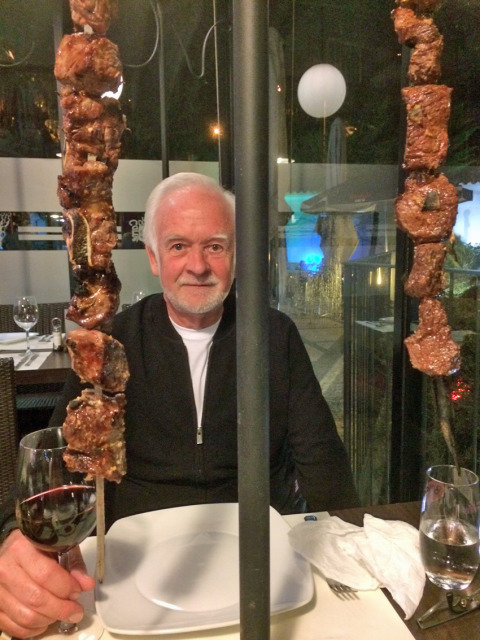 En av dessa middagar beställde vi bil till restaurang Vila da Carne. De var kända för sitt goda kött, så kött fick det bli! Åt deras speciella espetada – marinerat kött på spett!!!!