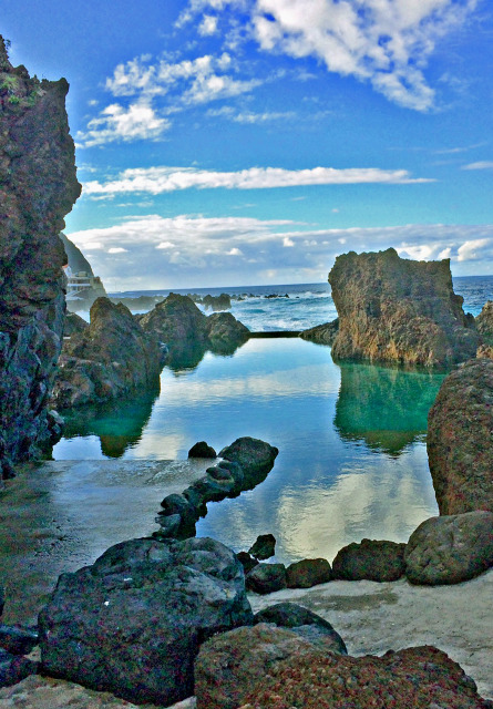 Porto Moniz ligger på öns nordvästra spets. Platsen är känd för sina lavabassänger och hit kommer både lokalbor och turister. Vi bodde på hotellet Aqua Natura Marina precis intill dessa udda havsbassänger, så det blev en del foton……